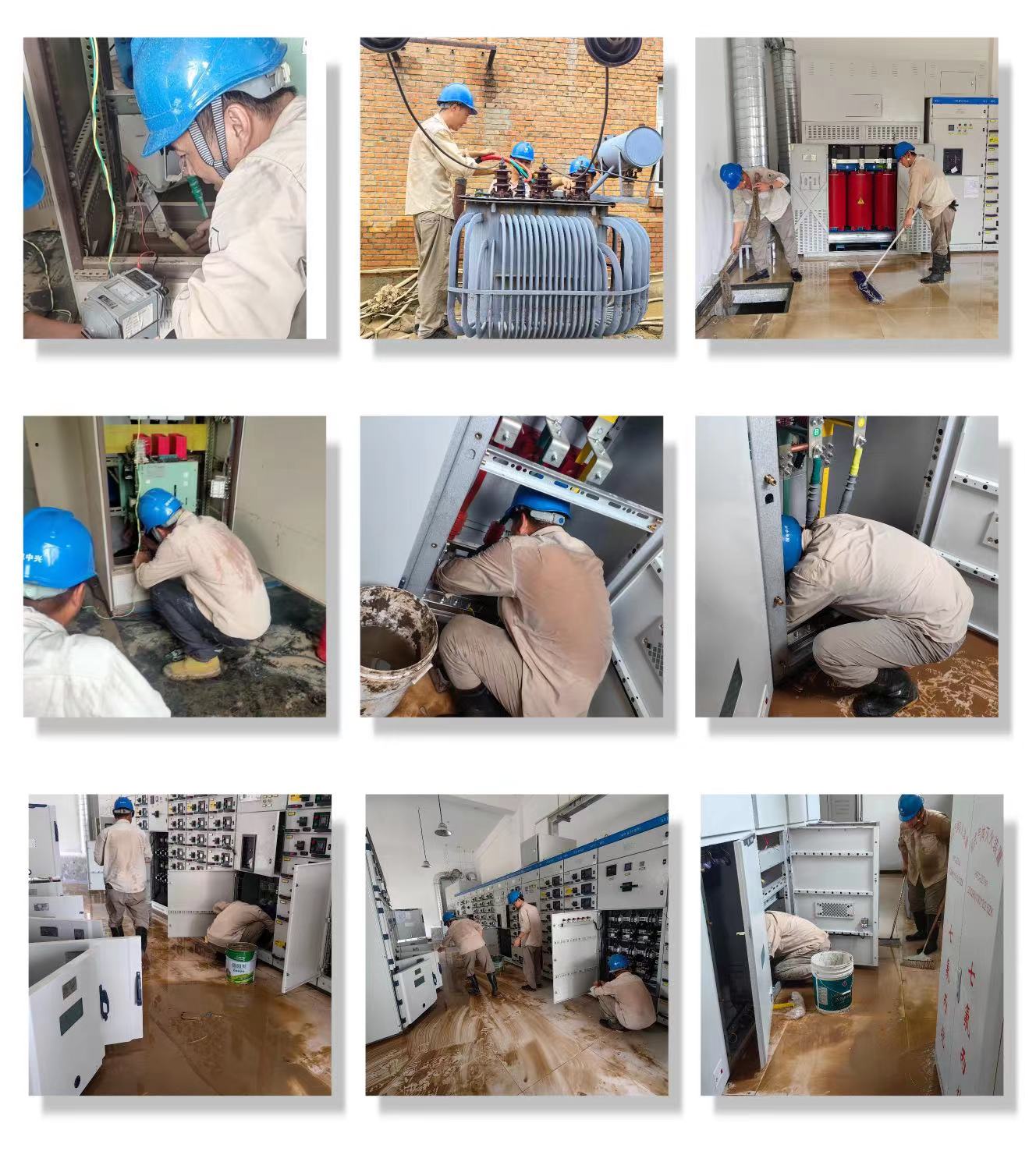 接下來進(jìn)行清淤。洪水淹沒的電纜夾層,積水量較大,通過兩臺(tái)泵8小時(shí)不間斷抽水方逐漸退去,露出滿是淤泥的地面。救援隊(duì)伍一鼓作氣,分工協(xié)作,配電室恢復(fù)到正常狀態(tài)。